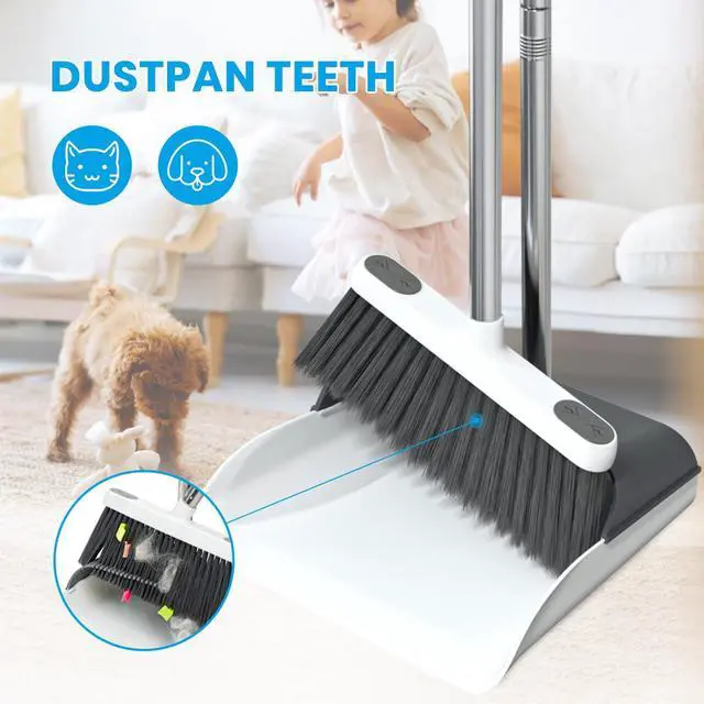Dustpan with Comb-The long handle dustpan with comb helps to clean the kitchen broom, makes it easy to scrape off the tangled hair of human and pet, and remove the dust from the broom bristles without hands. The durable handle of broom and dustpan is made of stainless steel for long lasting
