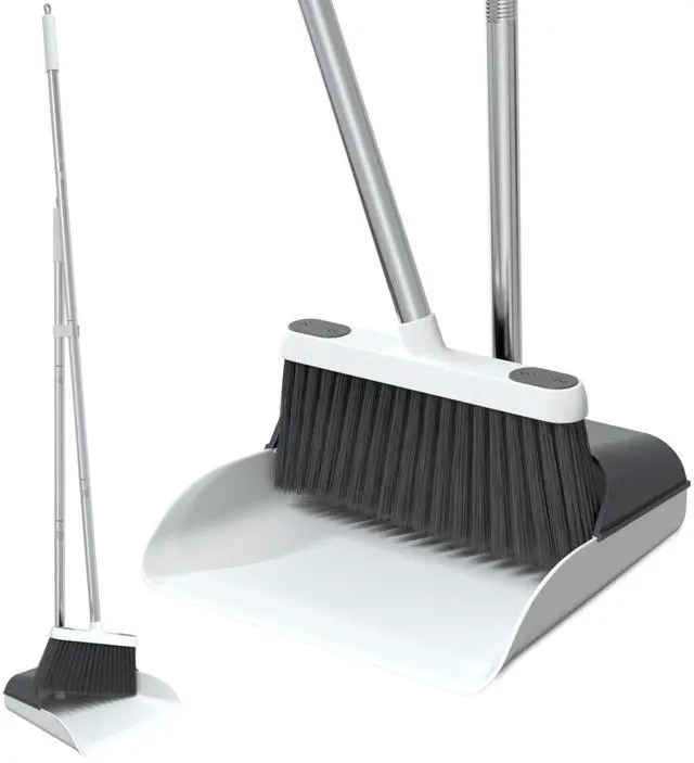 Easy Storage- Lock the broom for sweeping indoor to the dustpan with handle by the buckle, easy to store the broom with dustpan combo set in the corner or closet, ready to use