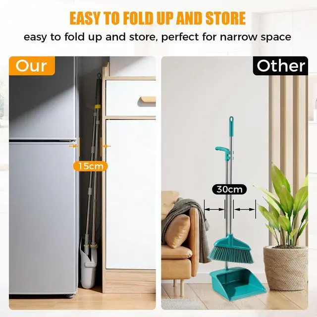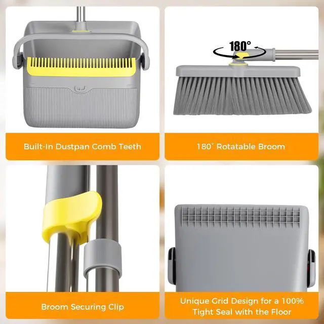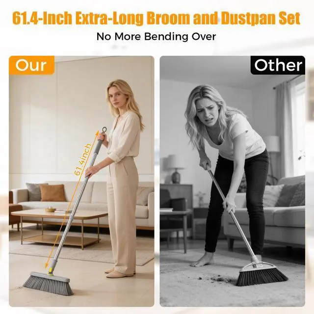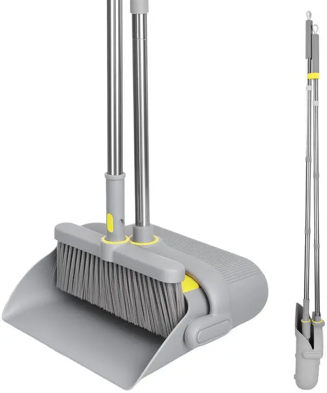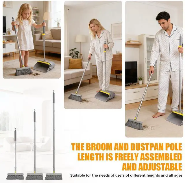 Broom and Dustpan Set with Adjustable Long Handle