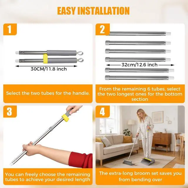 Adjustable handle extends from 40-50.8-61.4 inches to supportupright sweeping during daily home cleaning