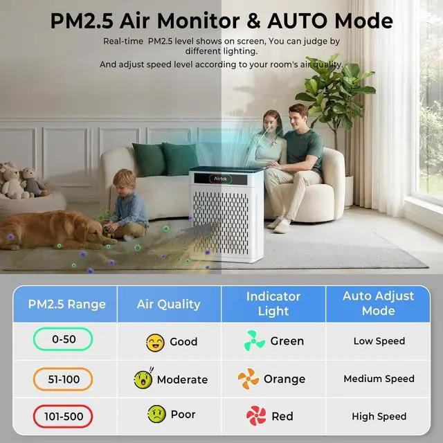Real-time indicator light shows current air condition: green for good, orange for moderate, and red for poor, keeping you clearly informed.