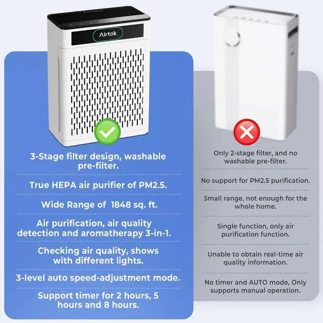 Sleep undisturbed with whisper-quiet night mode. The timer shuts off the air purifier as you drift off, giving you peaceful rest.