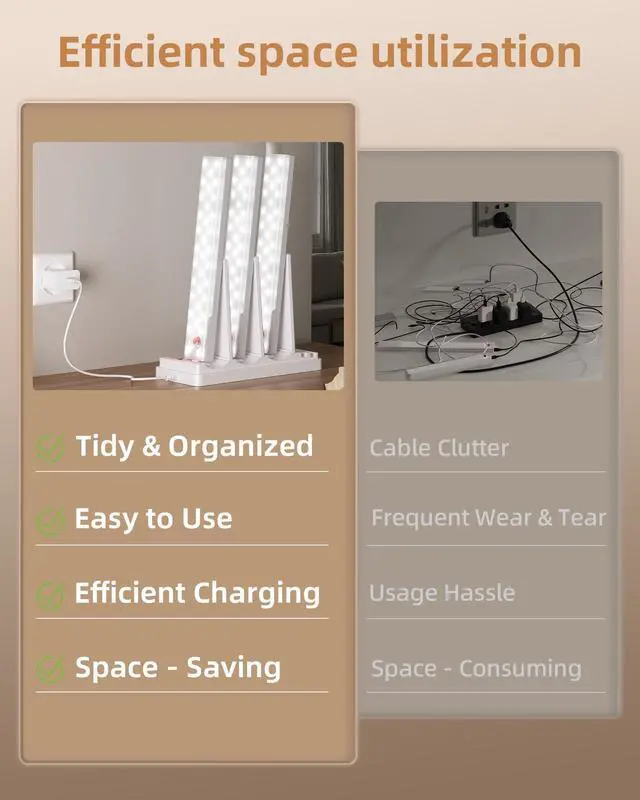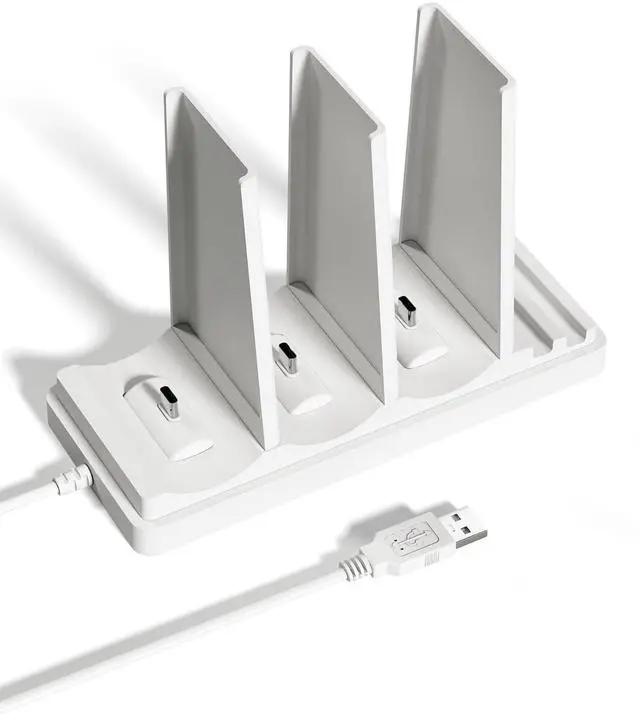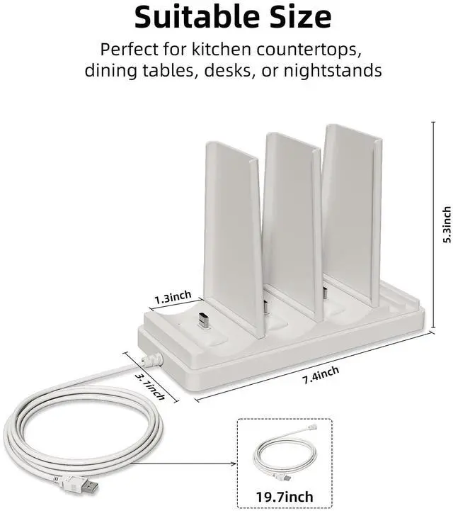 Space-saving Design: With an integrated multi-port design, this charging base cuts down on extra cords and keeps your desk from getting messy. It is convenient to store and takes up little space, easily keeping the desktop and room tidyleaving your home feeling fresh and organized