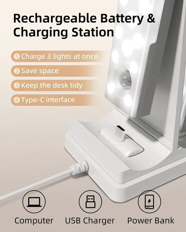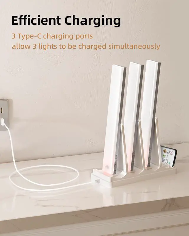 Efficient & Convenient: Equipped with 3 USB-C ports, this charging station can charge 3 bar lights at the same time. Each USB port provides an output current of 1A, efficiently meeting the power needs of multiple devices. It avoids occupying multiple wall sockets, which improves charging efficiency