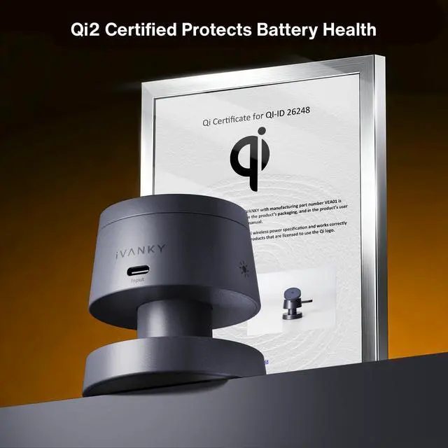 iVANKY 15W Qi2 Certified MagSafe Charger Stand for iPhone 17 with Night Light, 3 in 1 for Wireless Charging Station for iPhone 16/15/14/13/12 Pro/Max/Plus/Air Apple iWatch Airpods (No AC Adapter)