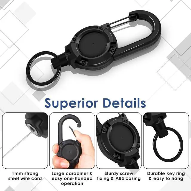 High Quality Materials: Lightweight and robust ABS case, tear-resistant wire rope and broad carabiner with a corrosion-resistant coating make the retractable keyring an indispensable accessory for your outdoor activities