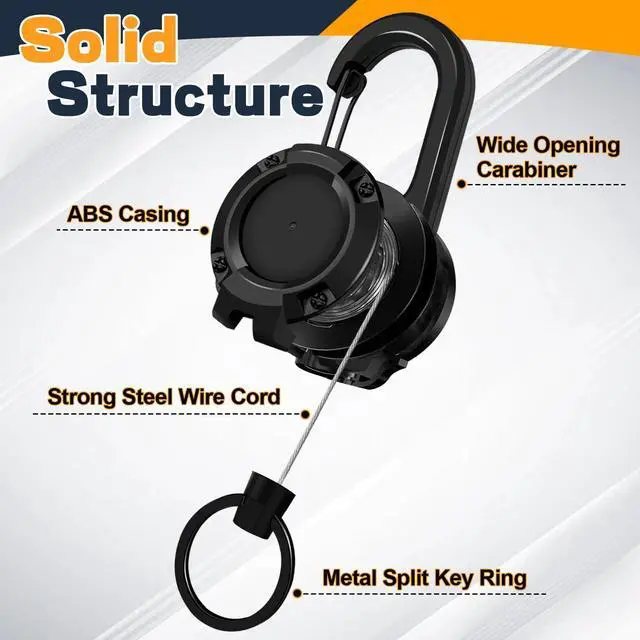 Each retractable keychain comes with a 60cm long 1mm retractable steel cable. The built-in strong spring resists a load of 7 oz. and over 100,000 stretches for your daily needs.