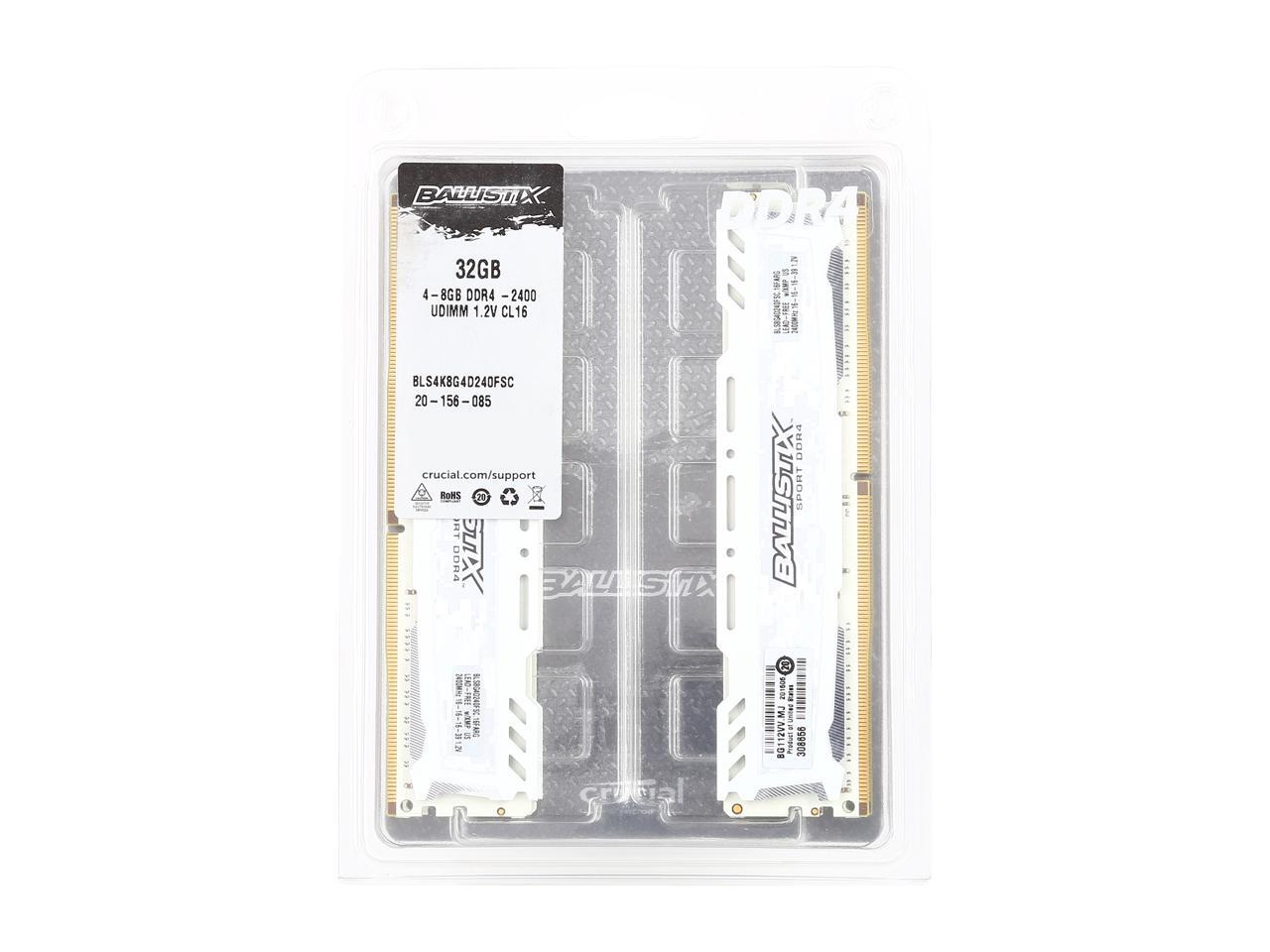 Ballistix Sport LT 32GB (4 x 8GB) DDR4 2400 (PC4 19200) Desktop Memory Model BLS4K8G4D240FSC