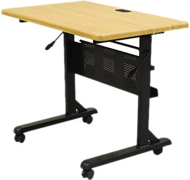 Portable flip top table converts easily into a multipurpose workstation. Top flips up for convenient storage. Constructed with durable PVC surface with black powder-coated steel frame. Mobile Table, Rectangle, Teak, 36"W