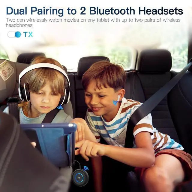 Pair Two Bluetooth Headsets Simultaneously Bluetooth receiver for home stereo system supports simultaneous connection oftwo Bluetooth headsets, you can share music or TV programs with your family orfriends. Dual 3.5mm airplane adapter ensure compatibility with a variety ofairplane audio interfaces.