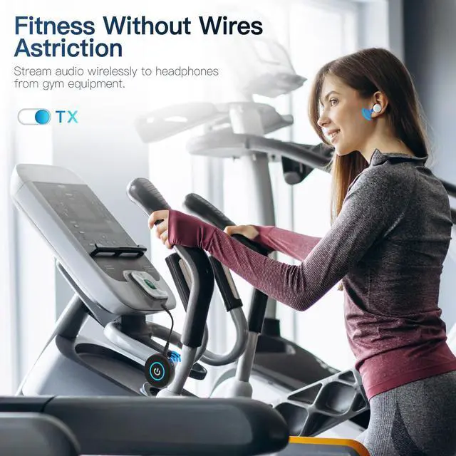 TX Mode Bluetoothtransmitter connected non-Bluetooth devices like TV/Airplaneentertainment/gym equipment to Bluetooth headphones/earbuds/Bluetooth speakersvia a 3.5mm cable.
