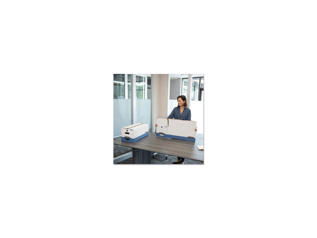 String button, medium-duty box perfect for filing, storing and moving. Unit Weight: 1.20 lbs., Master Carton: 16.04 lbs. Contains 60% recycled content for environmental sustainability.