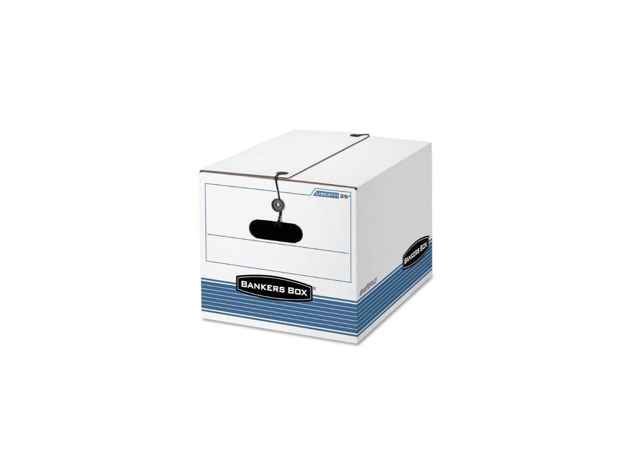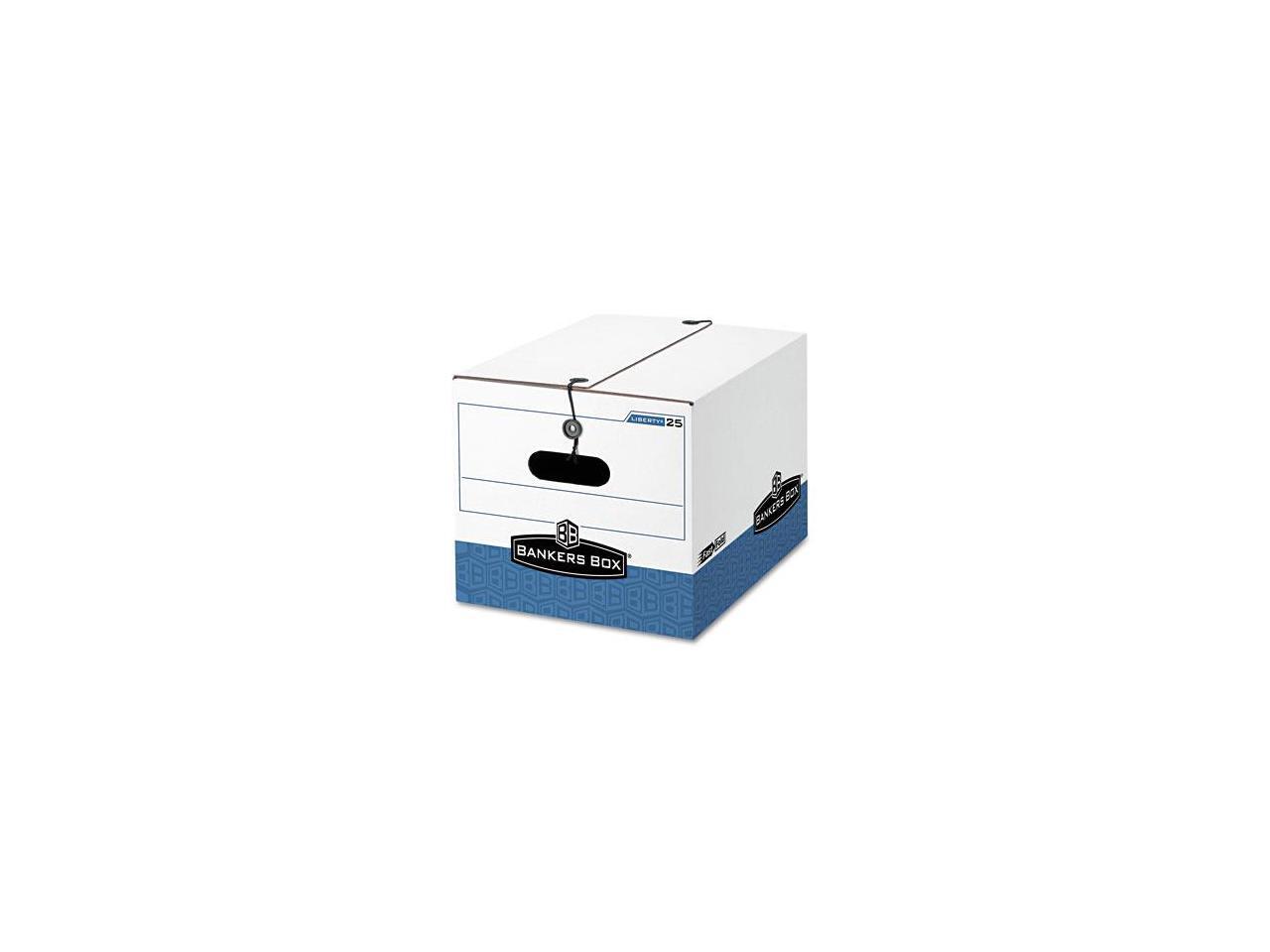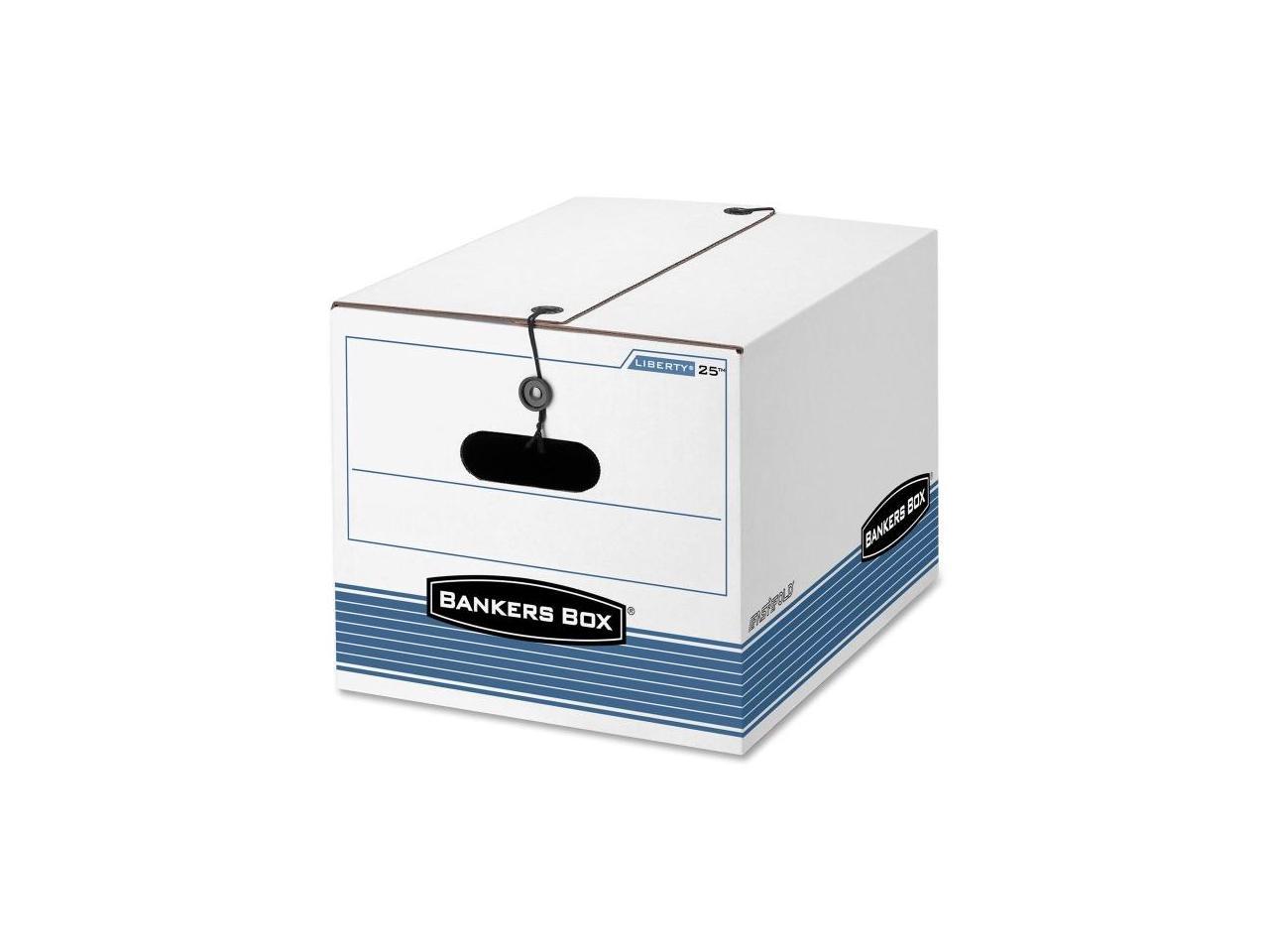Letter/Legal Size. String and button secure closure keeps items secure even if box is overturned. Bankers Box storage boxes offer durable and accessible organization for your files and more.