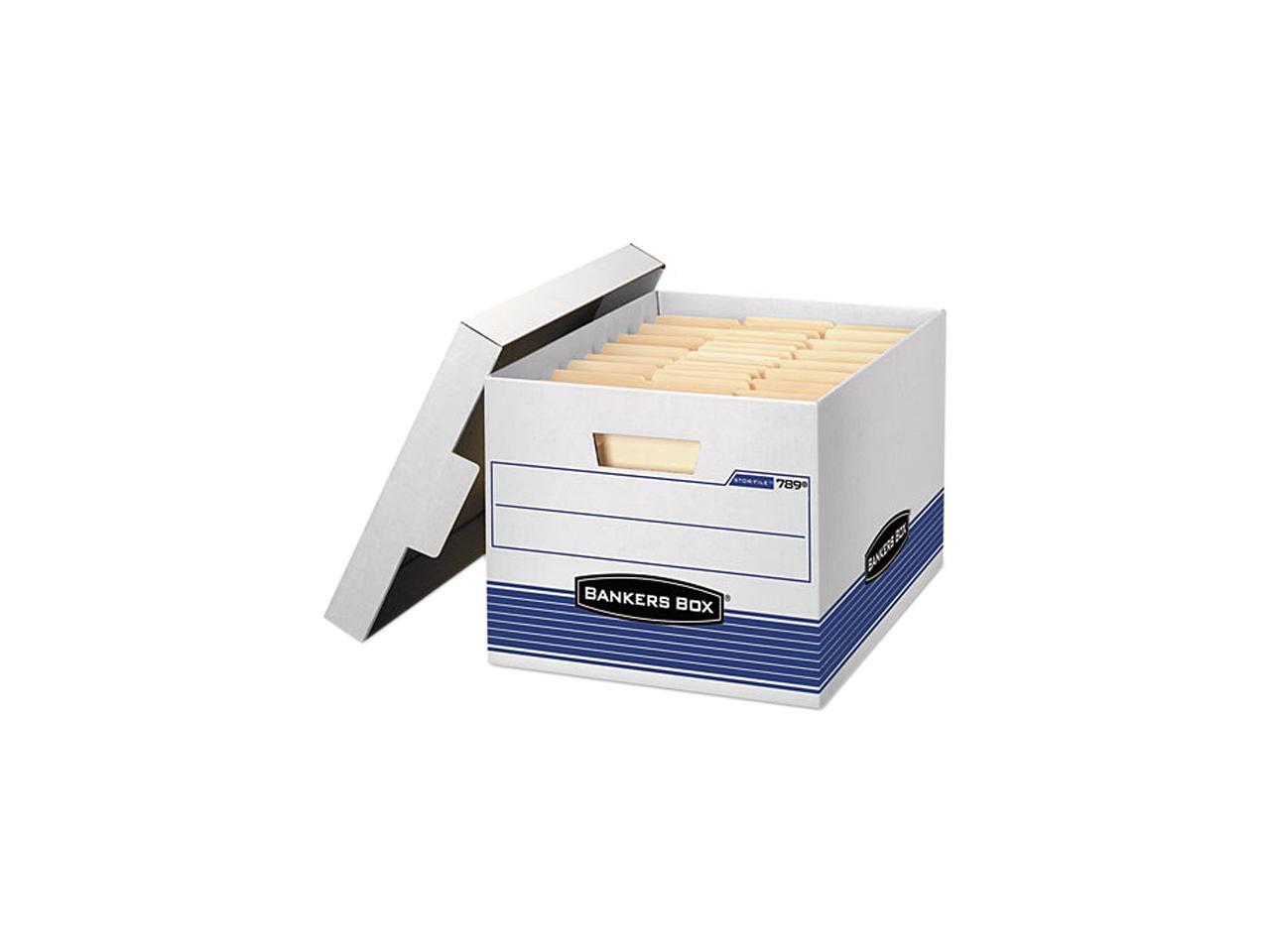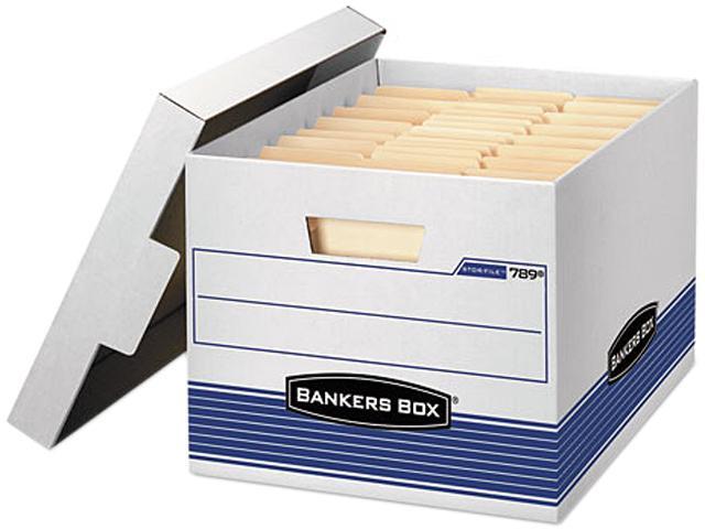 Bankers Box 0078907 Quick/Stor Storage Box, Letter/Legal, Locking Lid, White/Blue, 4/Carton