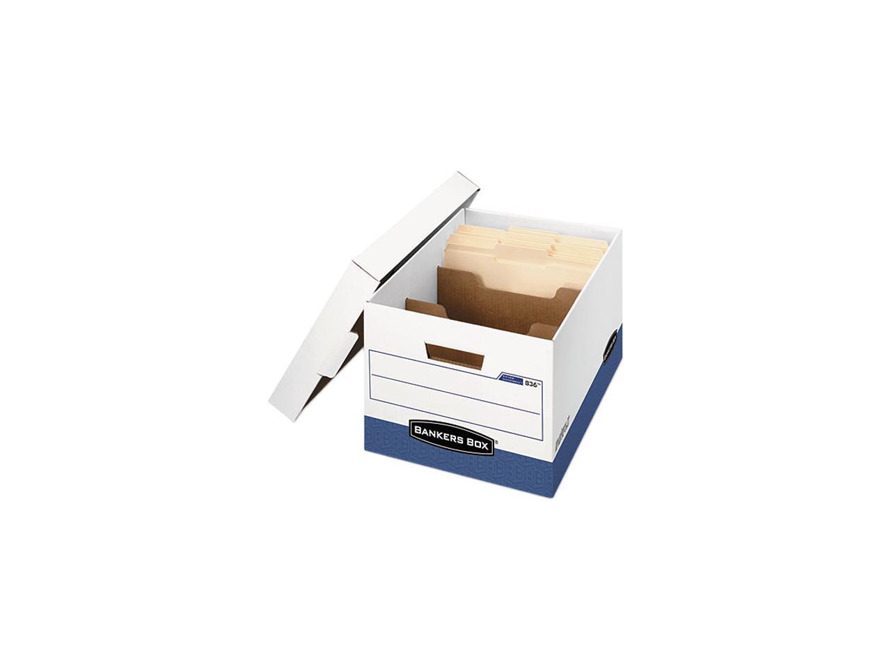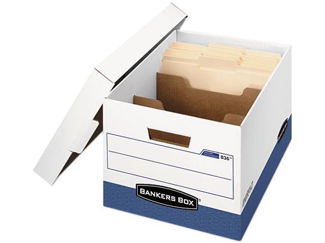 Bankers Box 0083601 R-Kive Maximum Strength Storage Box, Letter/Lgl, Locking Lid, White/Blue, 12/Ctn