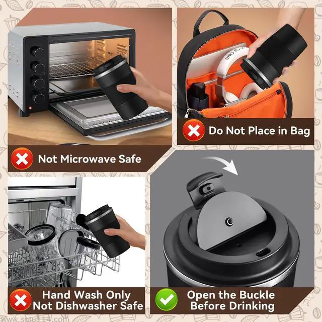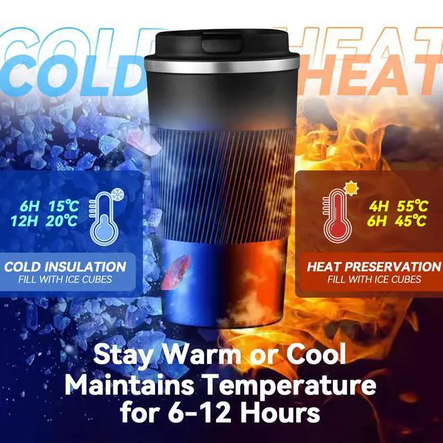 Superior Thermal Insulation: Featuring advanced double-wall vacuum insulation, this travel mug effectively preserves the temperature of your beverage without causing heat transfer or condensation on the outer surface. Whether you're enjoying a hot brew or a cold refreshment, your drink stays enjoyable from the first sip to the last.