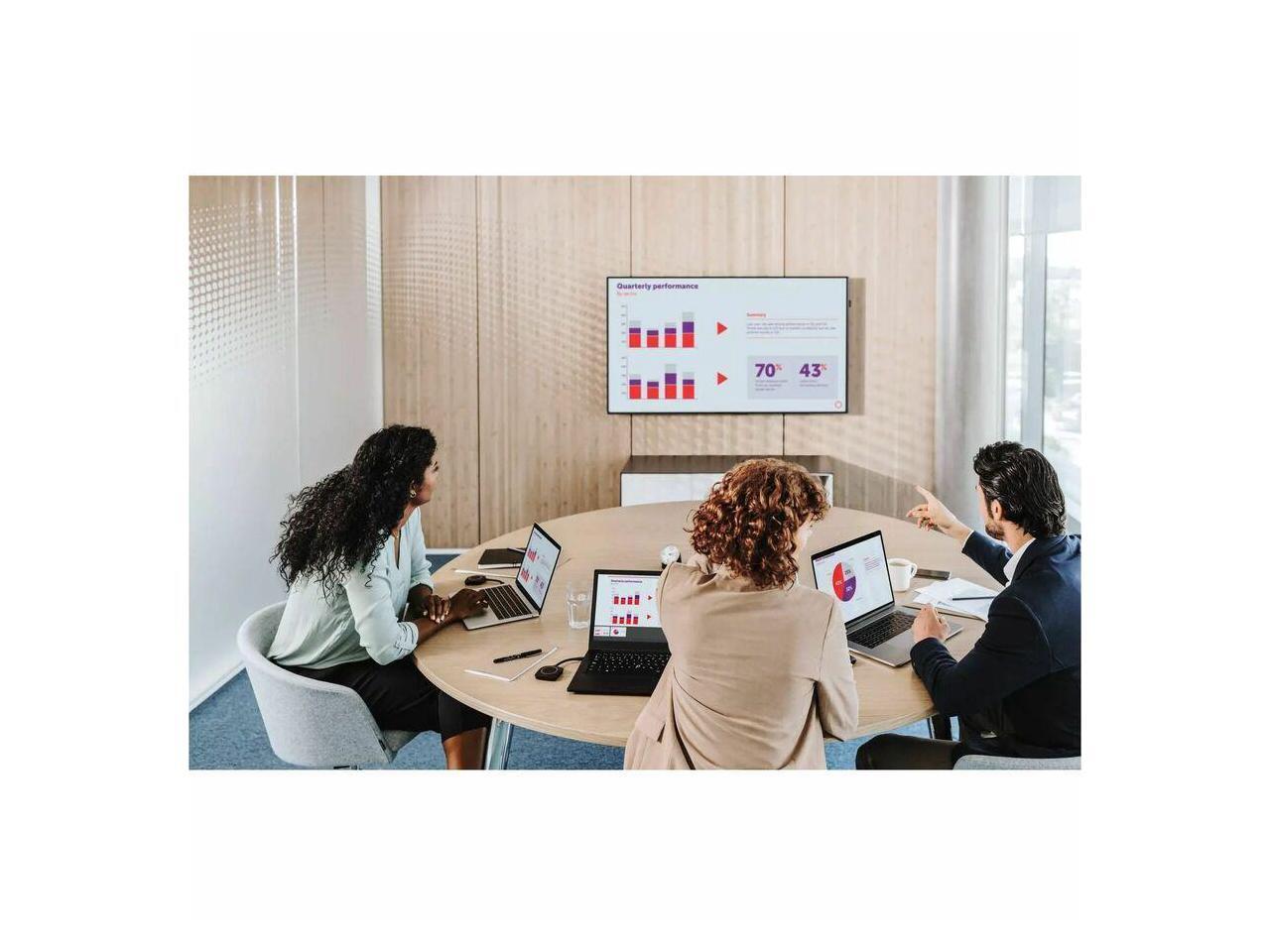 Interactive features: touchback, annotation and blackboarding; Increased collaboration with 2 sources on screen; Iconic ClickShare Button(s) for employees and guests; 100% secure, encrypted and cloud-managed