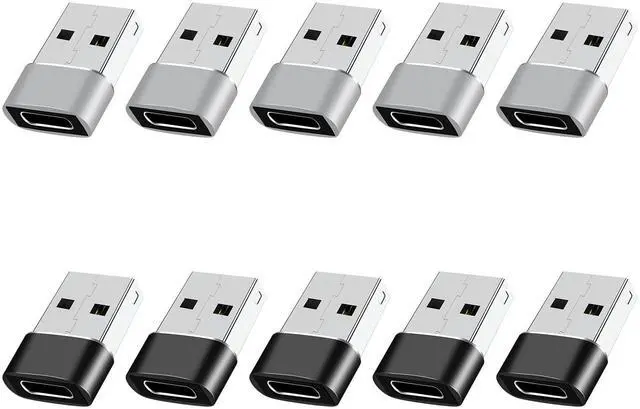 - These USB C to USB A adapter comes with 10 packs, One for home, one for office, one for car,one for charger, others for backup,sticking with laptops or commonly used Type C cable;Grey and Black suitable for different use of color matching needs.