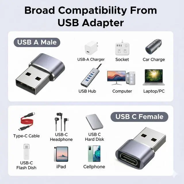 With this usb a to usb c adapter plugged into standard USB port, your legacy devices can turn into a USB-C enabled platform,enables you to connect phones, tablets, flash drives, hubs and other USB-C devices to your laptops and chargers with normal USB ports.