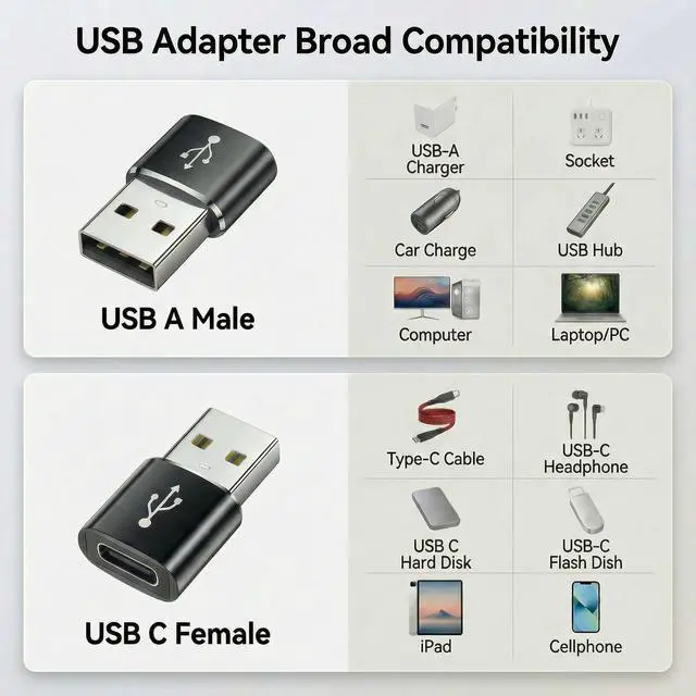 - This usba to usb c adapter Compatible with Standard USB A ports charger, Car charger/carplay.