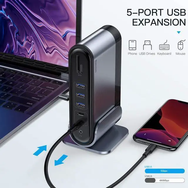 EntireProtect - Built-in intelligent chips, Up to100W design USB C Hub Dock, shorten the charging time with power delivery 3.0 (backward with PD2.0) provides over-current, over-voltage, over-temperature triple protection to ensure safety. To ensure that the interface works properly.Please connect PC port with hots before used.