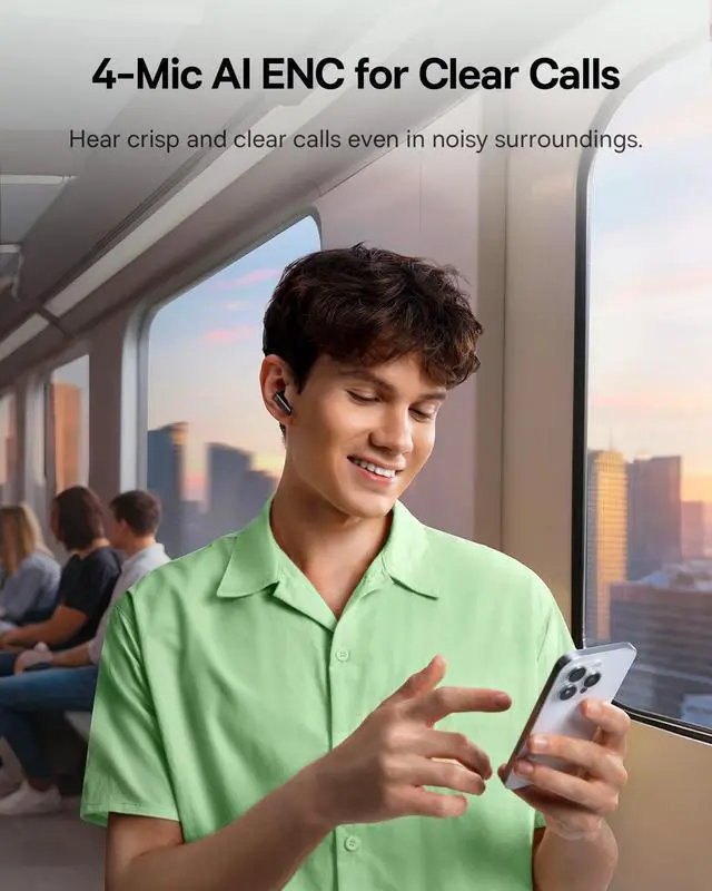 4-Mic AI Clear Calls: These Bluetooth earbuds feature 4-mic AI ENC technology that effectively isolates your pure voice from distractive background noise, ensuring your voice remains clear and crisp during every call whether you're in meetings, commuting, or outdoors in windy conditions