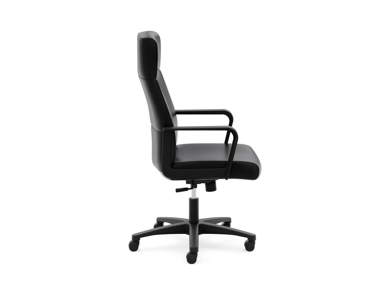 - High-back design is ideal for any executive or management application. Center-tilt mechanism rotates the seat from a point at the center to comfortably recline. 360-degree swivel p...