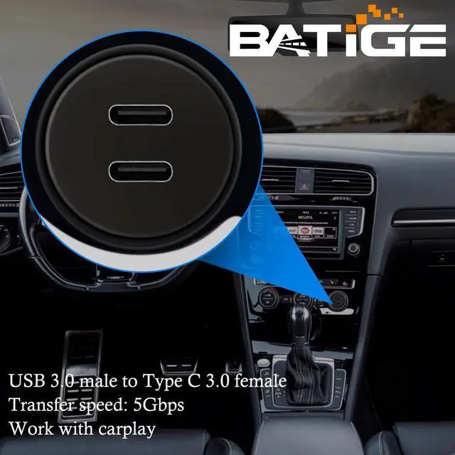 Works with vehicles with USB 3.0, USB 3.0 male to Type C 3.0 female extension flush panel mount waterproof cable. Work with carplay, data transfer speed is up to 5Gbps.