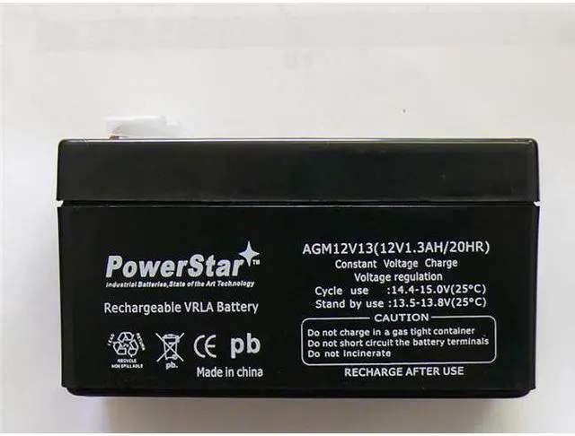 PowerStar battery general features Sealed Construction PowerStars's unique construction and sealing technique ensure that no electrolyte leakage can occur from the terminals or case of any PowerStar battery. This feature insures safe, efficient operation of PowerStar's batteries in any position. PowerStar batteries are classified as "Non-Spillable" and will meet all requirements of the International Air Transport Association. Absorptive Glass Mat System (AGM System) PowerStar batteries make use of fine mat separators (glass fiber) wherein suffient electrolyte is absorbed to provide the longest life and steady serive. This system prevents escape of electrolyte from the separator which causes leakage. Gas Recombination PowerStar batteries incorporated unique design that effectively controls generation of gas and allows recombination of over 90% of gas generated during the normal use. Maintenance-Free Operation During the expected floating service life of PowerStar batteries, there is no need to check the specific gravity of the electrolyte or add water, which means they require no maintenance service. In fact, there is no provision for these maintenance functions. Position-Free and Leakage-Free The combination of the sealed construction and the use of absorptive mat separators permit operation off PowerStar batteries in any position without loss of capacity, electrolyte and service life. Replacement Werker 12V 1.3AH AGM Battery w/ .187 Terminal - WKA12-1.3F 3.82*1.96*2.05