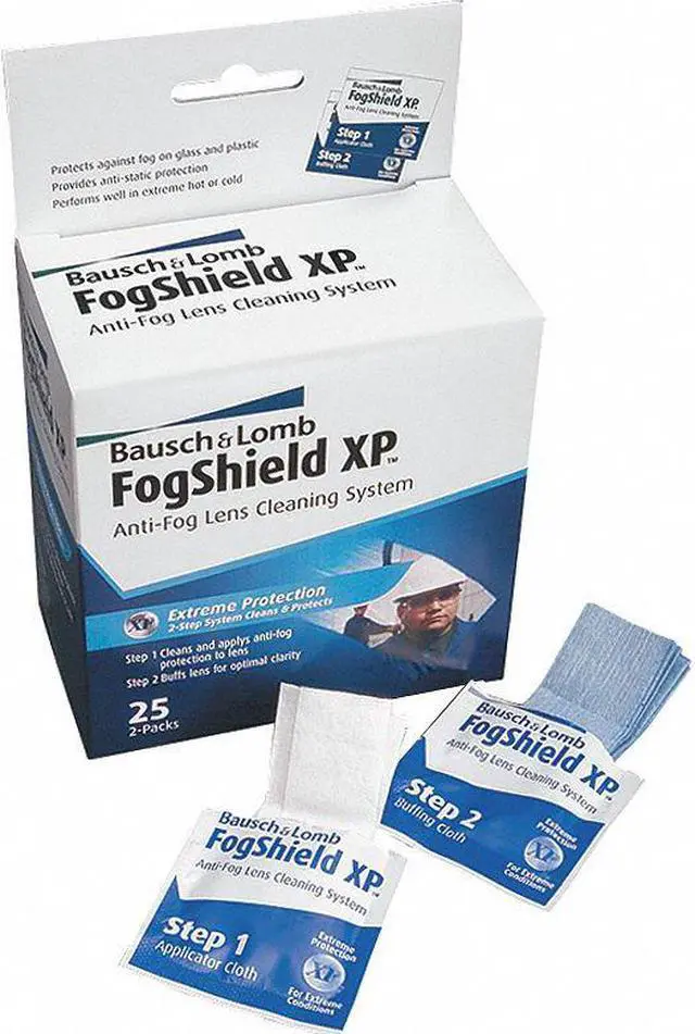 Lens Cleaning Tissues provide anti-fog protection for harsh working environments. Created for extreme temperature conditions - hot or cold, tissues clean both glass and plastic lenses, combining effective cleaning and extreme anti-fog protection. Ideal for use on safety glasses, face shields, goggles, and prescription glasses. The applicator cloth contains silicone anti-fog lens cleaning solution and is suitable for all glass or plastic lenses. Using the FogShield XP Pre-Moistened tissues is a two-step process with two different cloths. First, use the white, wet applicator cloth (8-1/4" x 4") to remove any abrasive material from the lenses or wipe the entire surface clean.