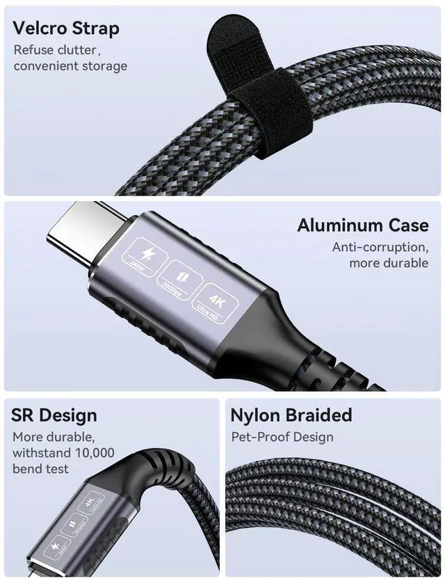 4K@60Hz Video & Display Ready: Turn your devices into a multimedia hub! This USB C video cable supports stunning 4K@60Hz ultra HD video outputperfect for mirroring or extending your screen to USB-C monitors, TVs, or projectors. Enjoy crisp, vibrant visuals for work or entertainment (Note: requires DP Alt Mode support on your device).