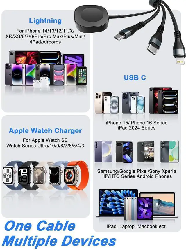 4 in 2 multi charging cable for apple watch