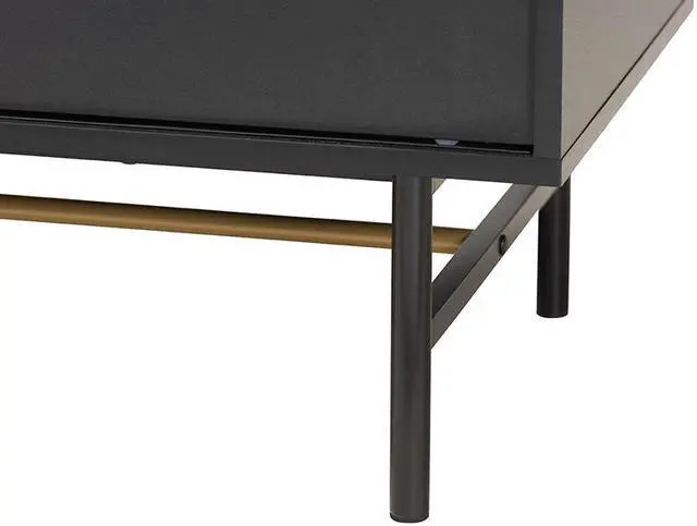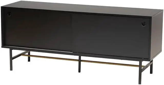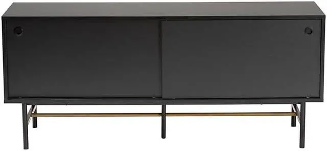 Delight in the refined, modern minimalist design of the Truett TV stand. Made in China, this avantgarde piece consists of a solid metal base fitted with wood and supports televisions measuring up to 58 inches. The sliding doors open to reveal two spacious shelves that perfectly accommodate media device, movies, and other living room essentials. The Truett requires assembly and features four cord management holes on its back panel for quick and easy setup. Presenting sleek modern flair while organizing your space, the Truett TV stand enhances any living room layout.