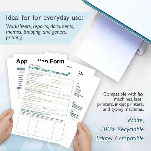 Recommended for copiers, plain paper, fax machines, laser printers, ink jet printers and typing machines. Use pens, markers, pencils, and other writing instruments on paper as well.