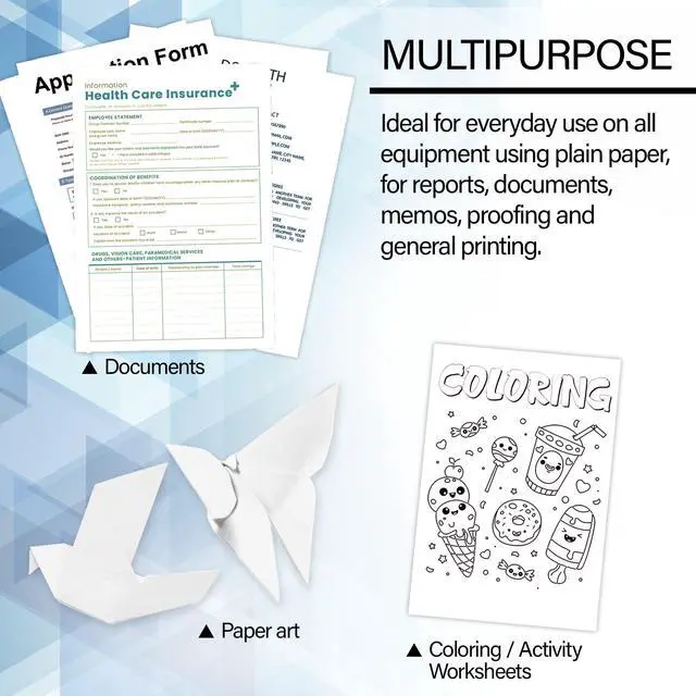 Filler paper is ideal for home, classroom, and office environments. Multipurpose white paper is the perfect for everyday use on all equipment.