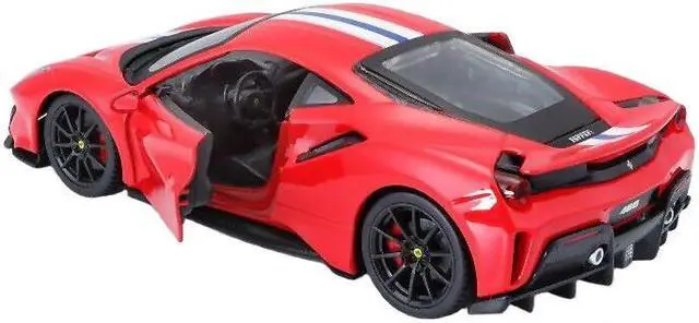 Brand new 1/24 scale diecast car model of Ferrari 488 Pista Red with White and Blue Stripes die cast model car by Bburago.