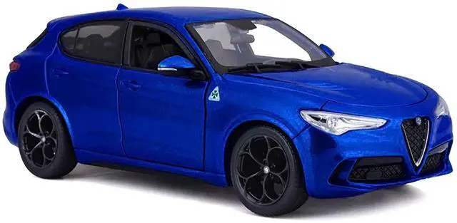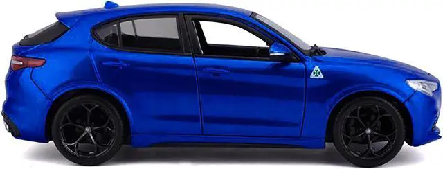 Brand new 1/24 scale diecast car model of Alfa Romeo Stelvio Quadrifoglio Blue die cast model car by Bburago.