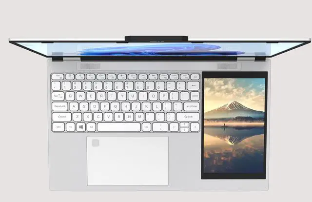 New Global Version Dual Screen Laptop 15.6 +7 Inch Window 11, Quad-Core, 5G WiFi, 180 ° opening and closing, Dual-screen design interactive handover; Seven-color backlit keyboard, Fingerprint unlock; Plug-in 2 million HD camera