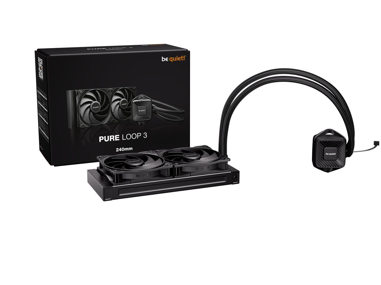 bequiet! PURE LOOP 3 240mm Black CPU liquid cooler for heavily overclocked systems, 2x Pure Wings 3 PWM high-speed fans, Daisy chained PWM fans, PWM pump features 6-pole motor with 3 phases BW027