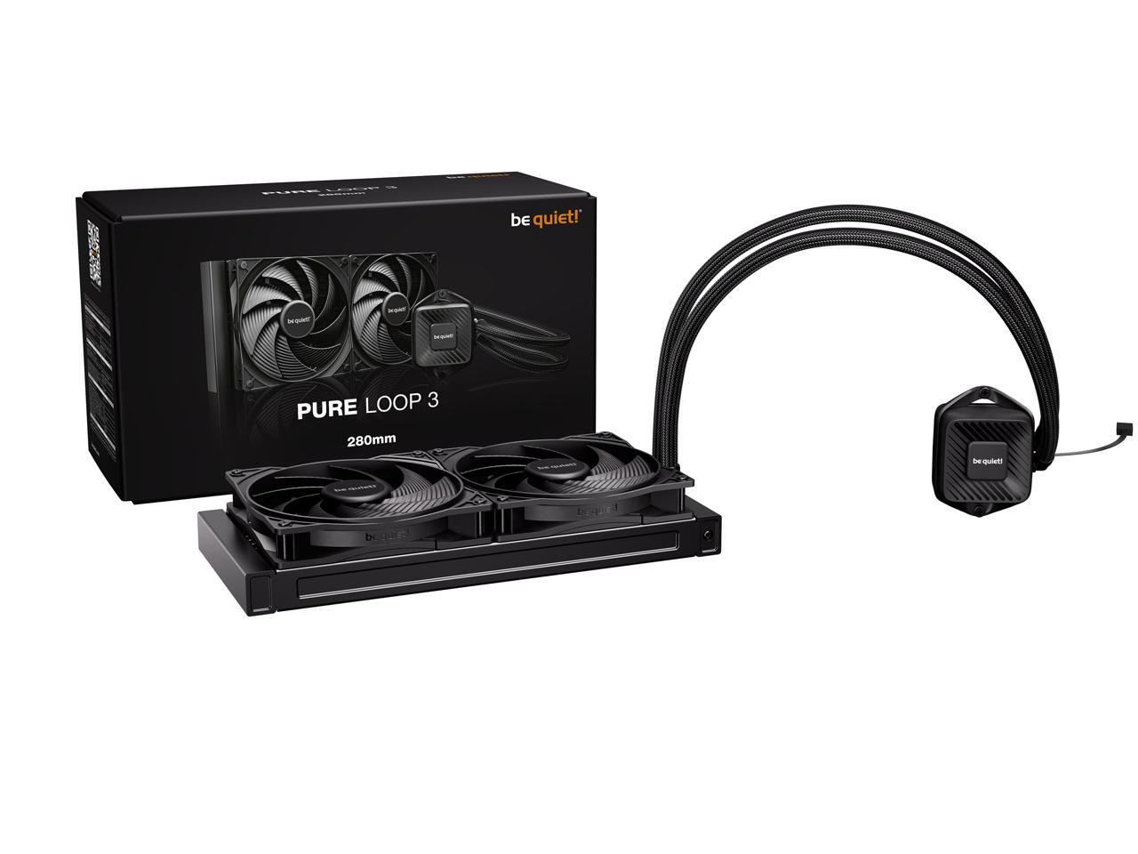 bequiet! PURE LOOP 3 280mm Black CPU liquid cooler for heavily overclocked systems, 2x Pure Wings 3 PWM high-speed fans, Daisy chained PWM fans, PWM pump features 6-pole motor with 3 phases BW028