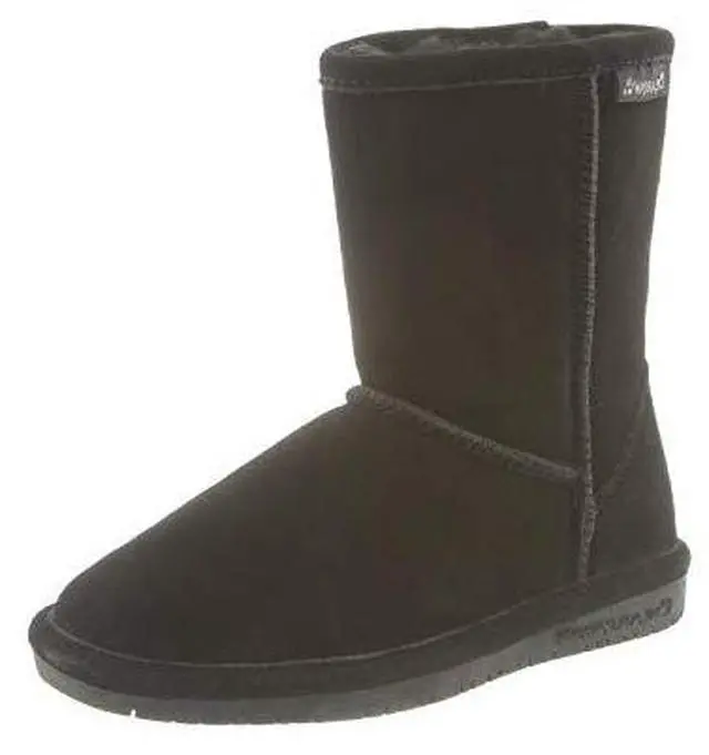 Keep your feet warm cozy and well protected from biting cold weather with these kids Bear Paws Emma winter boots. Made from a suede upper with stitching detail these pull-on boots come with a sheepskin and wool blend lining a sheepskin footbed and a low-profile rubber wedge outsole. Suede upper. Insulated interior. Perfect for winter. High-grade sole. Warm insole. Slip-on and slip-off.