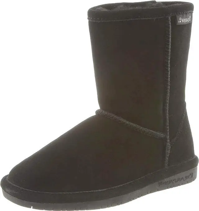 Keep your feet warm cozy and well protected from biting cold weather with these kids Bear Paws Emma winter boots. Made from a suede upper with stitching detail these pull-on boots come with a sheepskin and wool blend lining a sheepskin footbed and a low-profile rubber wedge outsole. Suede upper. Insulated interior. Perfect for winter. High-grade sole. Warm insole. Slip-on and slip-off.