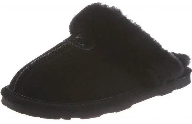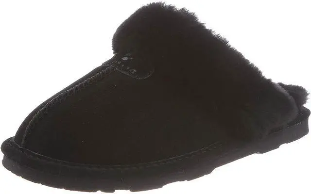 100% Suede. Dyed sheep fur. Rubber sole. Shearling lined. Bearpaw Womens Loki II Slide Slipper