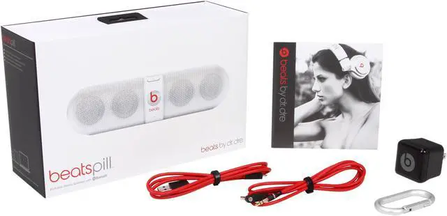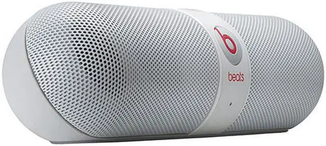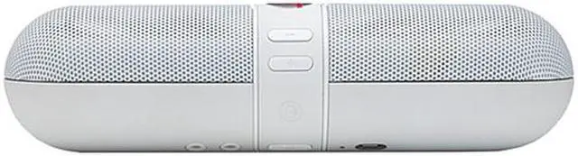 Grab the take-anywhere, capsule-shaped pill Portable Speaker in white from Beats by Dr Dre and use it to enjoy premium sound for your favorite music with soaring highs and deep, booming bass. It connects to any Bluetooth-enabled device, eliminating the need for any cords. You'll be able to change tracks from your phone, laptop or other connected device from a maximum of 30 feet away. The speaker is also equipped with an internal microphone, so you can make conference calls on your phone using Bluetooth connectivity. Its lithium-ion battery is rechargeable, and provides up to seven hours of continuous playback when it's fully charged. Of course, the pill is compact and lightweight so that you can easily take it with you in the morning and keep it on hand all day. Another benefit to the pill speaker is that it comes with a carry case, so when you grab it and go it can travel safely. The case has a carabiner for easy attachment to a bag or backpack.