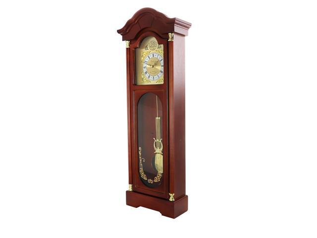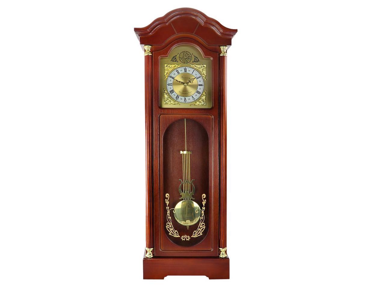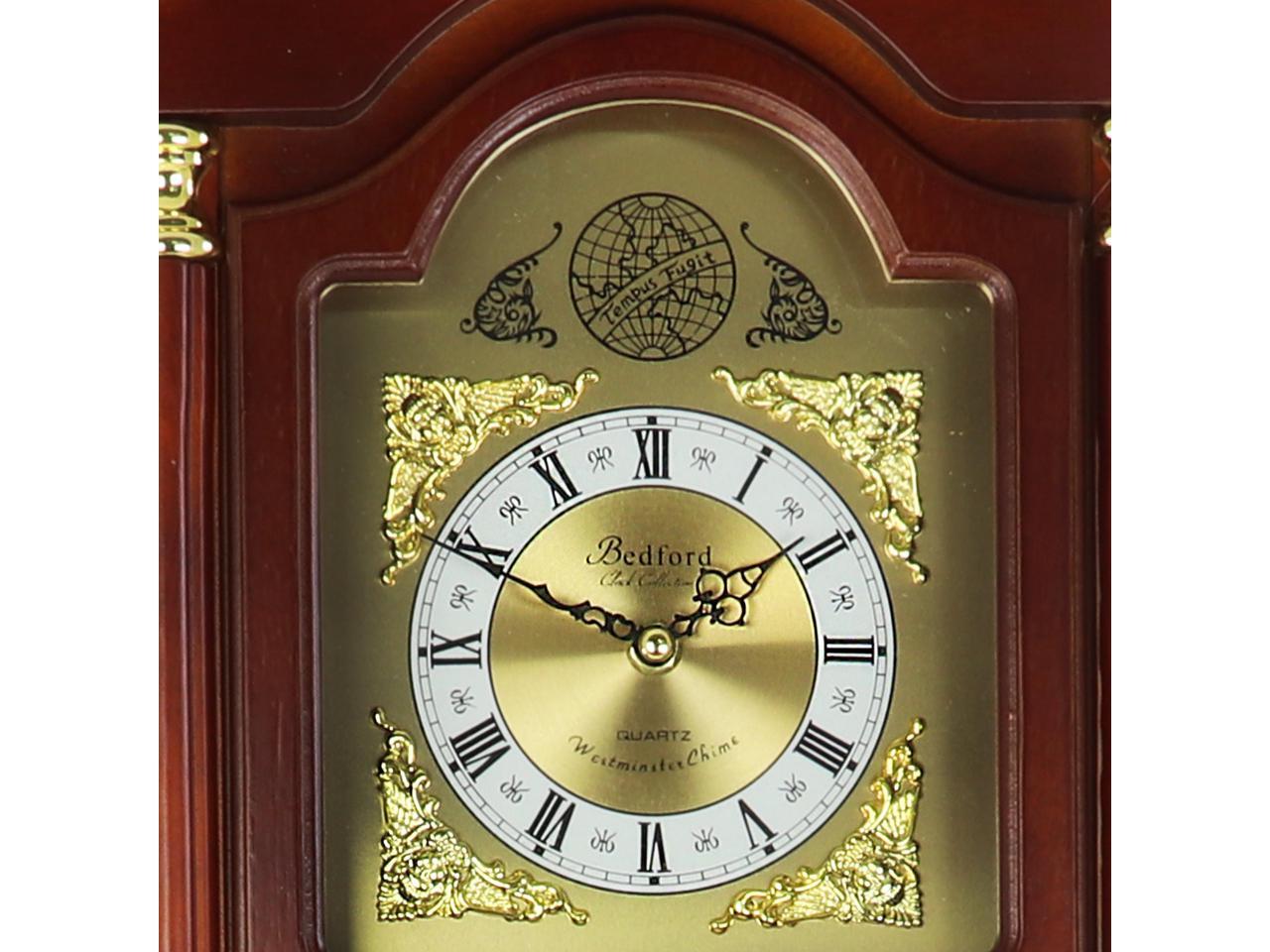 Bedford Clock Collection Antique Cherry Oak Finish Chiming Wall Clock with Roman Numerals