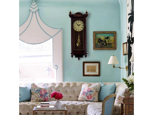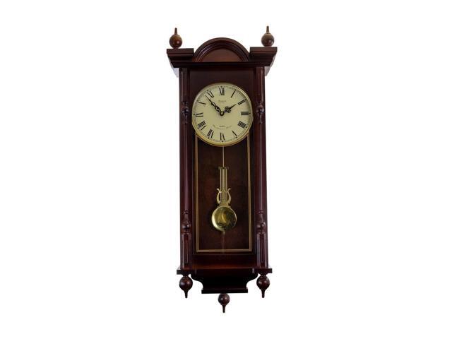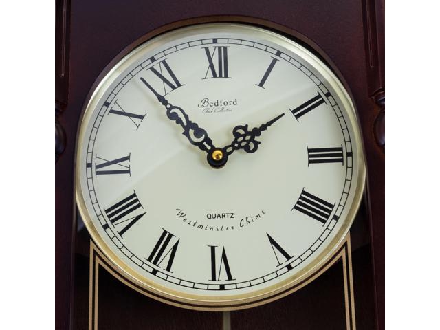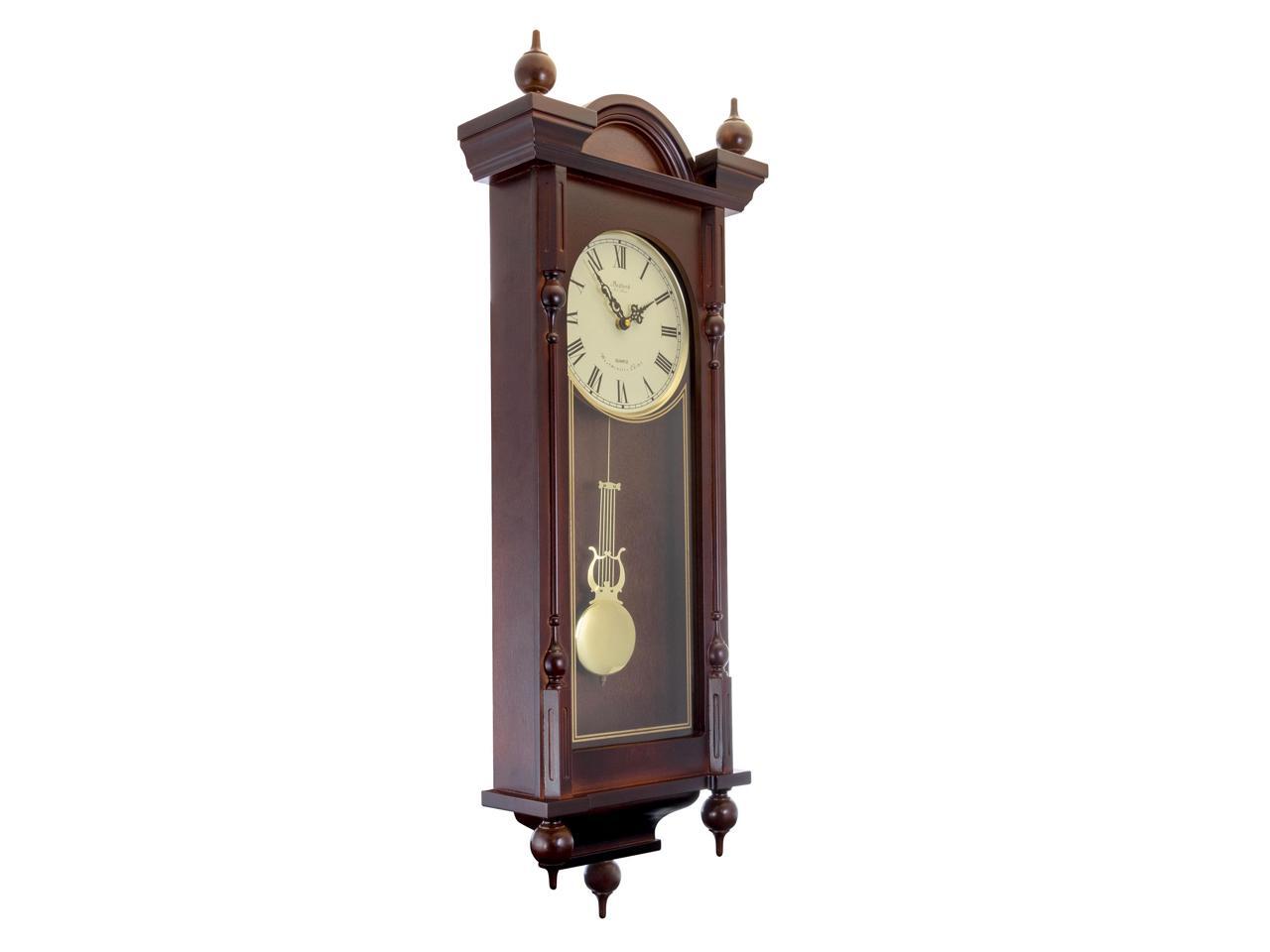 Bedford Clock Collection 31" Antique Mahogany Cherry Oak Chiming Wall Clock with Roman Numerals