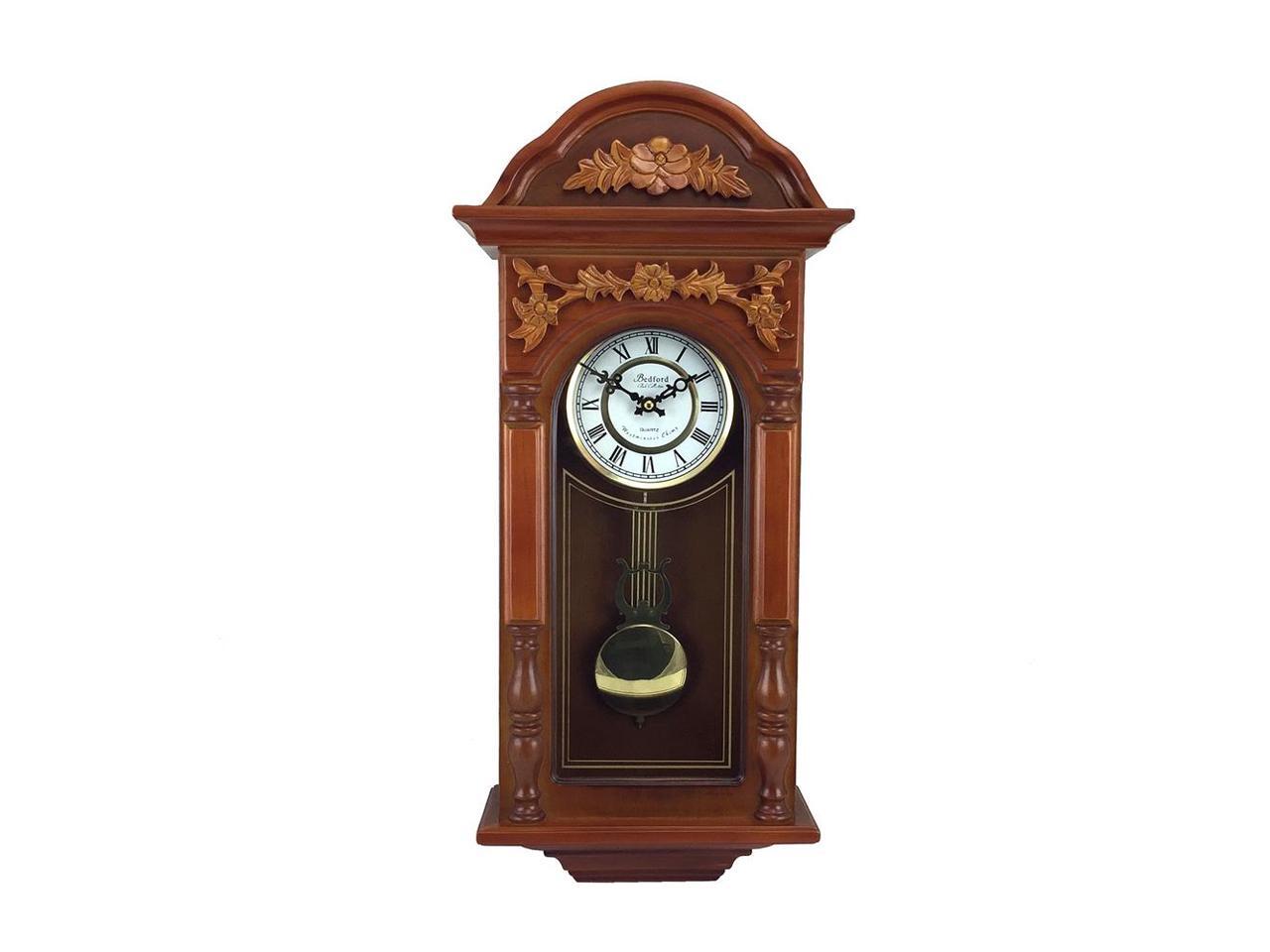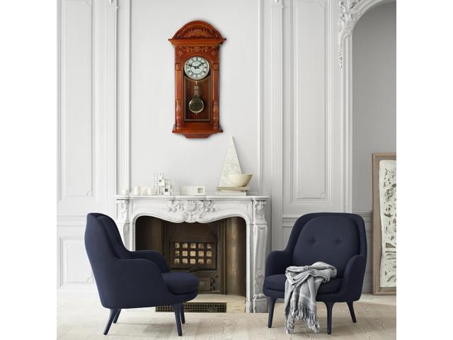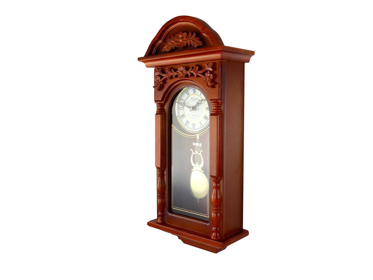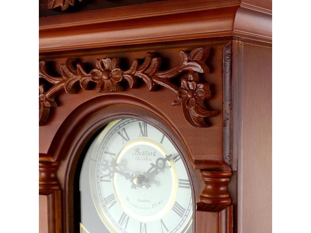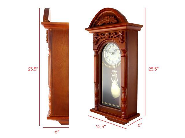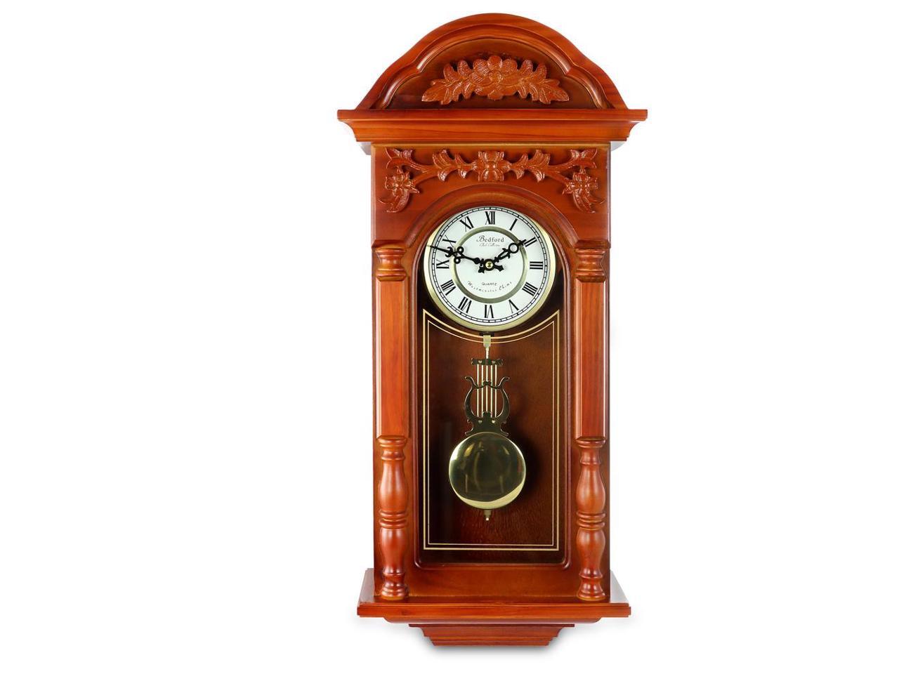 Bedford Clock Collection 27.5" Antique Chiming Wall Clock with Roman Numerals in a Padauk Oak Finish
