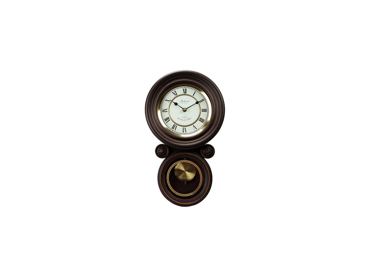 Bedford Clock Collection Black Round Head Style Wall Clock with Pendulum