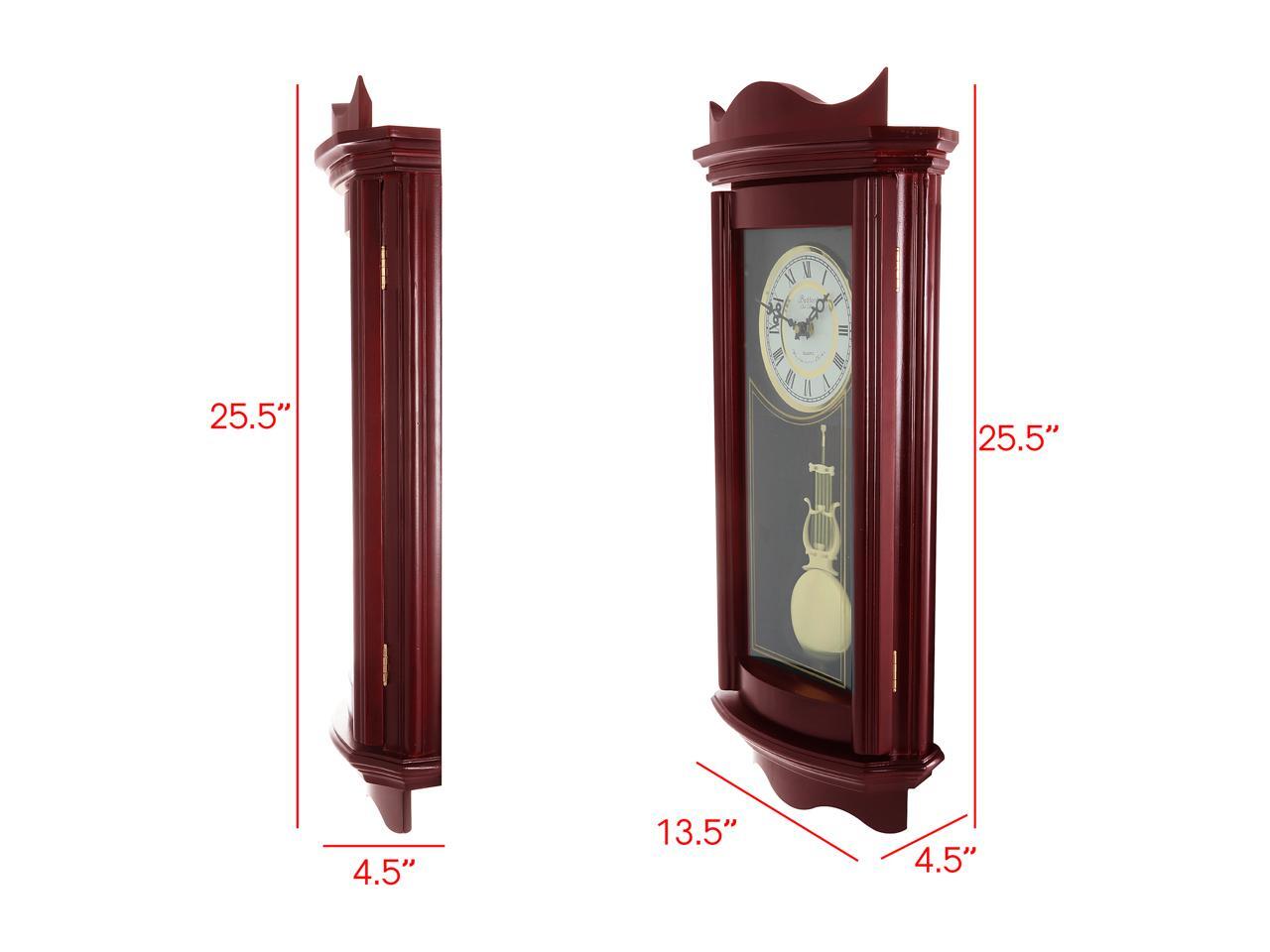 Bedford Clock Collection Weathered Chocolate Cherry Wood 25 Inch Wall Clock with Pendulum