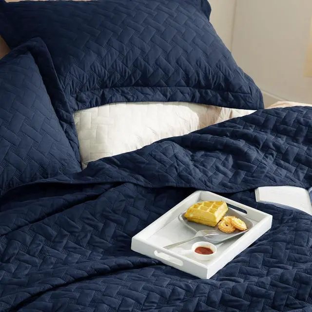 All Season Use: This quilt set is suitable for year-round use. The heavier-than-average polyester microfiber filling covered in the 85 GSM brushed polyester shell gives this quilt the right amount of weight. This textural, sturdy, and lightweight quilt set is suitable for hot summer eves and delivers essential supplementary warmth during cold winter days. Softness That Lasts: This king quilt is tightly stitched for a superior softness performance than ultrasonic alternatives, providing you with the comfort and softness that last. Enhanced Durability: With 10 stitches per inch on the quilt and over 14 stitches per inch on the edges, this quilt set comes with enhanced durability against extended wear and tear, including the scratches and sheds from pets. Versatile and Practical: This quilt set is versatilely practical for various use cases, including as a thin summer quilt, as an extra bedspread in the winter, as a bed coverlet for pet, or as a simple and elegant bedding decoration element. Colorful Decor Element: The elegance of basket weave pattern coupling with a wide range of color options made available, this quilt set makes the perfect cozy companion for every home. What You Can Get: This quilt set comes with a King size quilt (106" x 96") and two pillow shams (20" x 36" + 2").